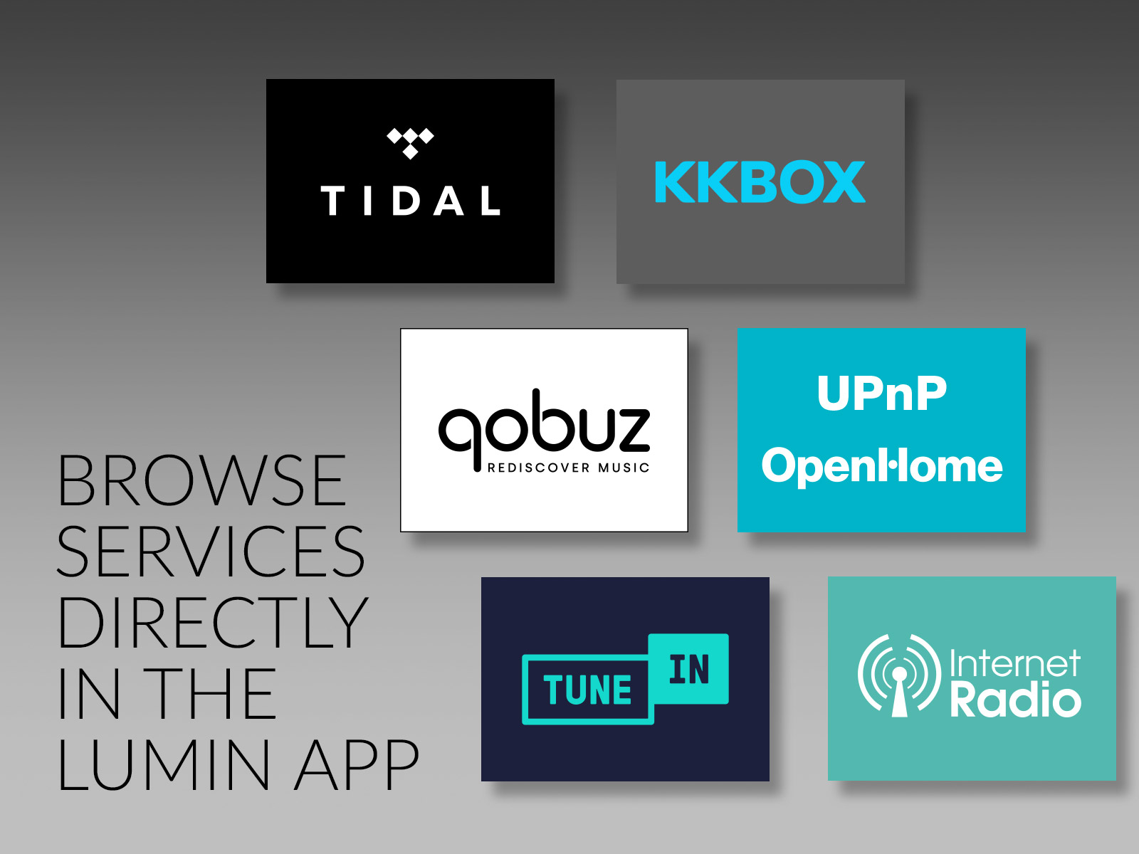 All LUMIN control is achieved through the LUMIN App. We've created it in harmony with the LUMIN hardware to deliver the most intuitive and visually rich way to browse, select and play your music collection.