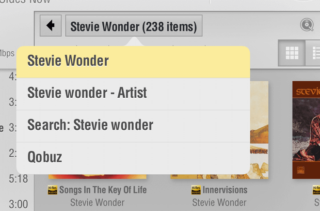 NavigationAt any point you can press the button in the top of the browse panel to see breadcrumb navigation. This list is scrollable and can take you right back to the Qobuz home screen or any step in between. |