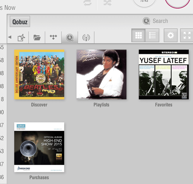 BrowseOnce logged in, you will see the Discover and Playlists areas (other areas become available as you use Qobuz such as Favorites and Purchases). You can drill down through these to access Qobuz's recommendations and also your stored Qobuz playlists and 'Favorites'. |