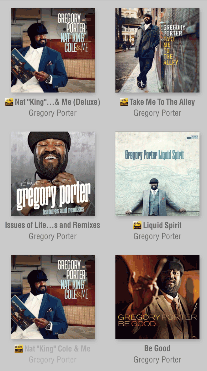 High-Res icons (Sublime and Studio accounts only)To help with selecting the highest quality versions of Qobuz music, a High-Res icon Most High-Res albums also have regular redbook versions on Qobuz servers, so you will often see duplicate albums when searching. Look for the High-Res icon to distinguish between them. High-Res icons also appear in other parts of the LUMIN app - The Playlist (see below) and also the 'Now Playing' song title. Note: Bit Rate and Sample Rate vary between High-Res songs. The actual figures will be displayed in the 'Now Playing' area. |