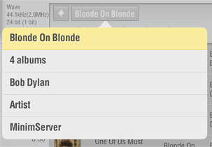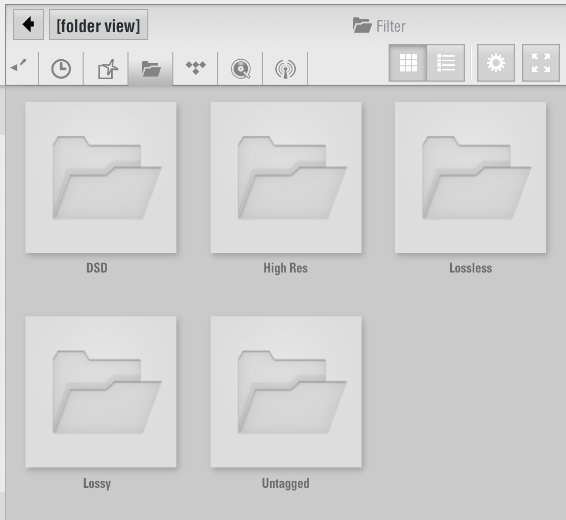 By tapping on the item named '[folder view]' you can drill down through physical folders on the server, so you can organise your own structure. As an example, you could have folders named DSD/High Res/Redbook/Lossy, etc. to achieve something not possible with normal tag-based browsing.